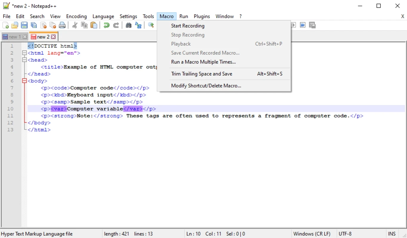 It offers seamless support for almost 80+ programming languages to make the code editing process smooth and fast. The supported languages are C, Java, XML, HTML, PHP, JavaScript, RC resource files, makefile, ASCII art files, doxygen, ini files, ASP, VB/VBS files, SQL, Objective-C, CSS, Pascal, Perl, Python, and so on.